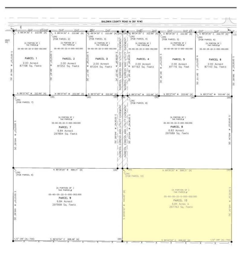 Located in the County, this flat, cleared 6.84 Acre parcel is just off of Co. Rd. 65 on Co. Rd. 16, in Foley. It is zoned Rural Agricultural so you can do anything as long as it's for personal use. Build your dream home, put in a mobile home or set it up for your Rv. You can even build a barn to store your toys. There is NO HOA. Perfect location, central to Foley, Bon Secour, Gulf Shores and Magnolia Springs PIN # 32754 for the whole parcel -new PIN numbers will be assigned once lots are purchased. Buyer to verify all information during due diligence.