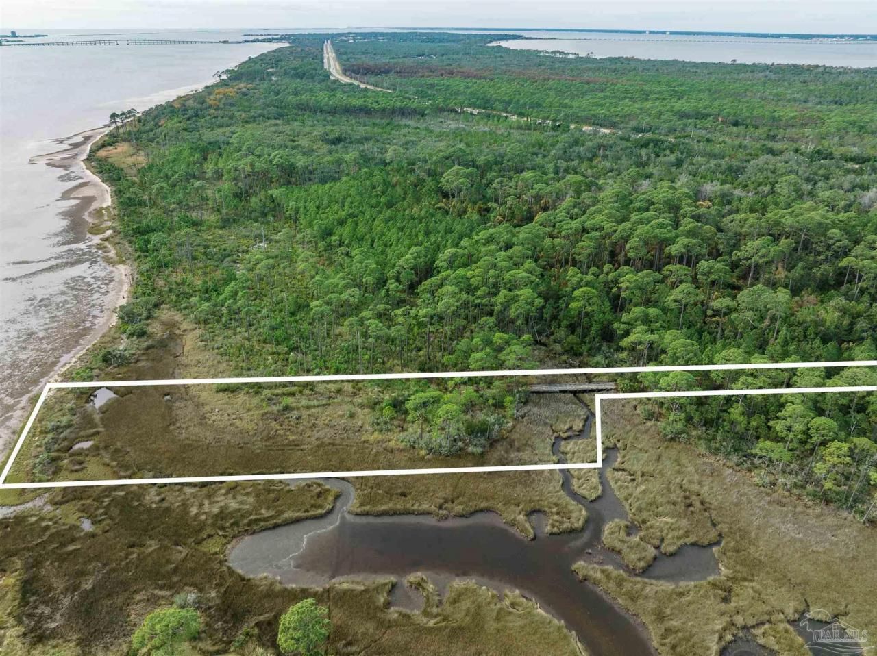 Waterfront and forest lot in Gulf Breeze on Santa Rosa Sound. Unique lot and location to build your dream home. This opportunity offers both waterfront living with fantastic sound views and the forest of the Naval Live Oaks Nature Preserve with access to over 7 miles of hiking trails! A true nature-lover's paradise filled with mature trees, sawgrass, and with a continuously running spring, which attracts abundant wildlife. Access via private drive and bridge over estuary to partially-cleared lot. Home will require piling construction and further permitting prior to construction. Bring your love of nature and your imagination!