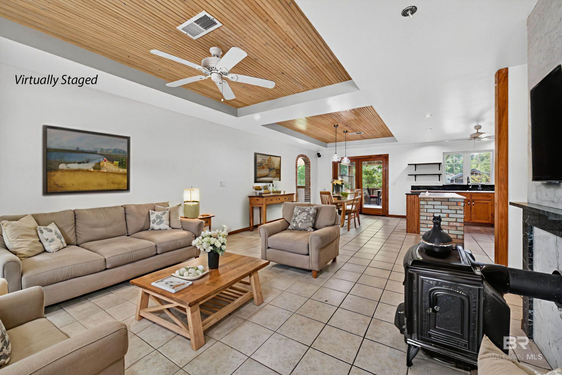 Nestled in the tranquil Fish River community with Fish River access, this unique home effortlessly combines rustic charm with modern conveniences. The residence is thoughtfully constructed featuring custom Cypress wood finishes and beadboard accents (from a Louisiana sawmill). This is a unique home that is not your cookie cutter variety. The main house includes three bedrooms; each filled with natural light and providing ample storage. The central living room is highlighted by a wood-burning stove, serving as a centerpiece of the room and this flows into a Keeping Room - the perfect space to curl up with a good book. The kitchen is open...read more
