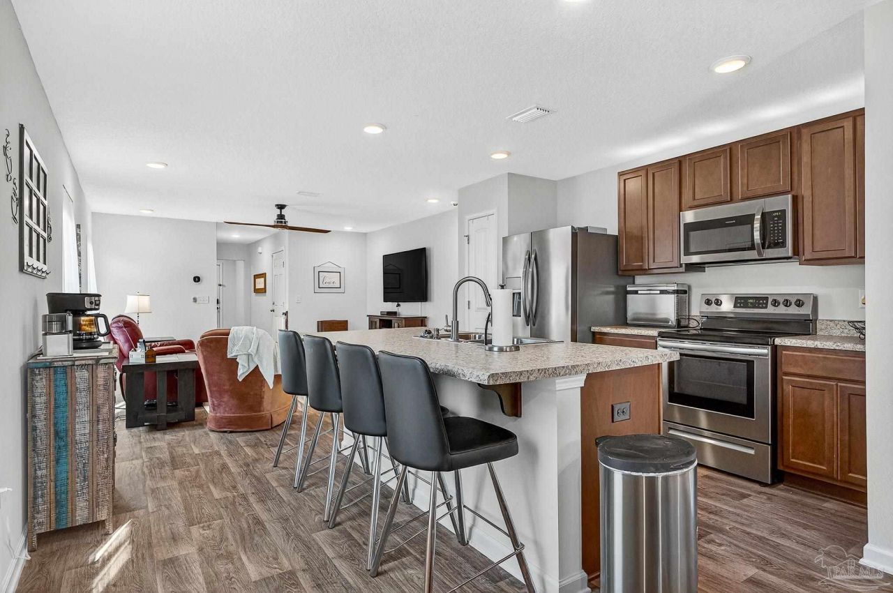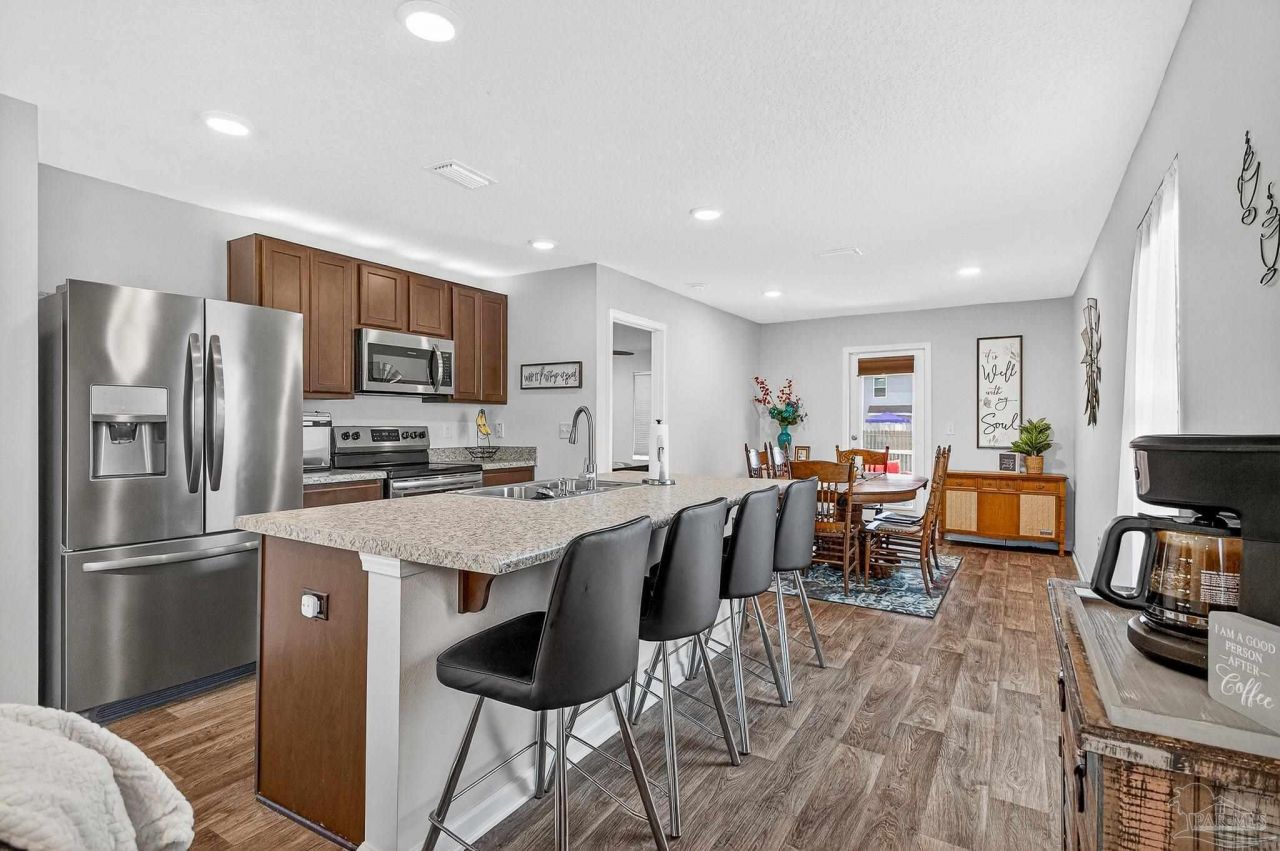 Seller is willing to assist with closing cost and/or concessions. VA Appraised, Survey and Title work done. Quick Close. Welcome to this well maintained and clean, 3-bedroom, 2 bath home with 1469 sq ft of comfort, and the kind of thoughtful improvements that make daily life easier. The open floor plan brings together the living room, dining area, with the center kitchen, so everyone stays connected, whether you are cooking, chatting, or pretending to help cook but actually just taste testing. The main living area features recessed lighting plus a ceiling fan, creating a bright and airy space. The kitchen includes an island with bar seating,...read more