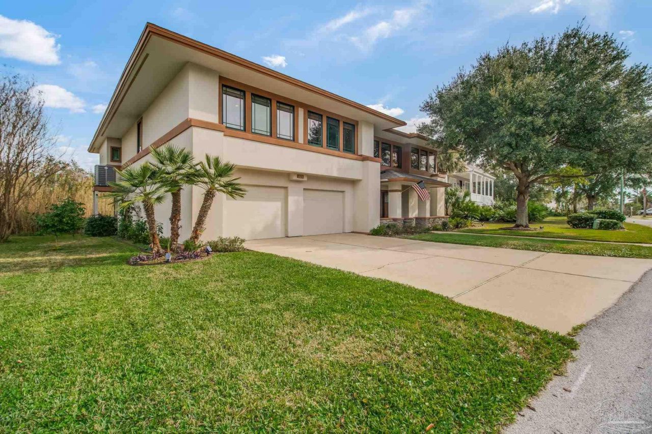Sensational water-view home located in the gated community of Deer Point Village in Gulf Breeze, just minutes from Pensacola Beach and Downtown. Enjoy sweeping views of the Santa Rosa Sound and peaceful wetlands alive with herons and osprey. Only steps from your door, launch paddleboards and kayaks from the community dock or private beach, making coastal living effortless and immersive. From the moment you enter through the leaded-glass front door, the craftsmanship and warmth of this contemporary Craftsman-style home are immediately apparent. Gorgeous wood details and walls of windows flood both the living areas and bedrooms with natural...read more