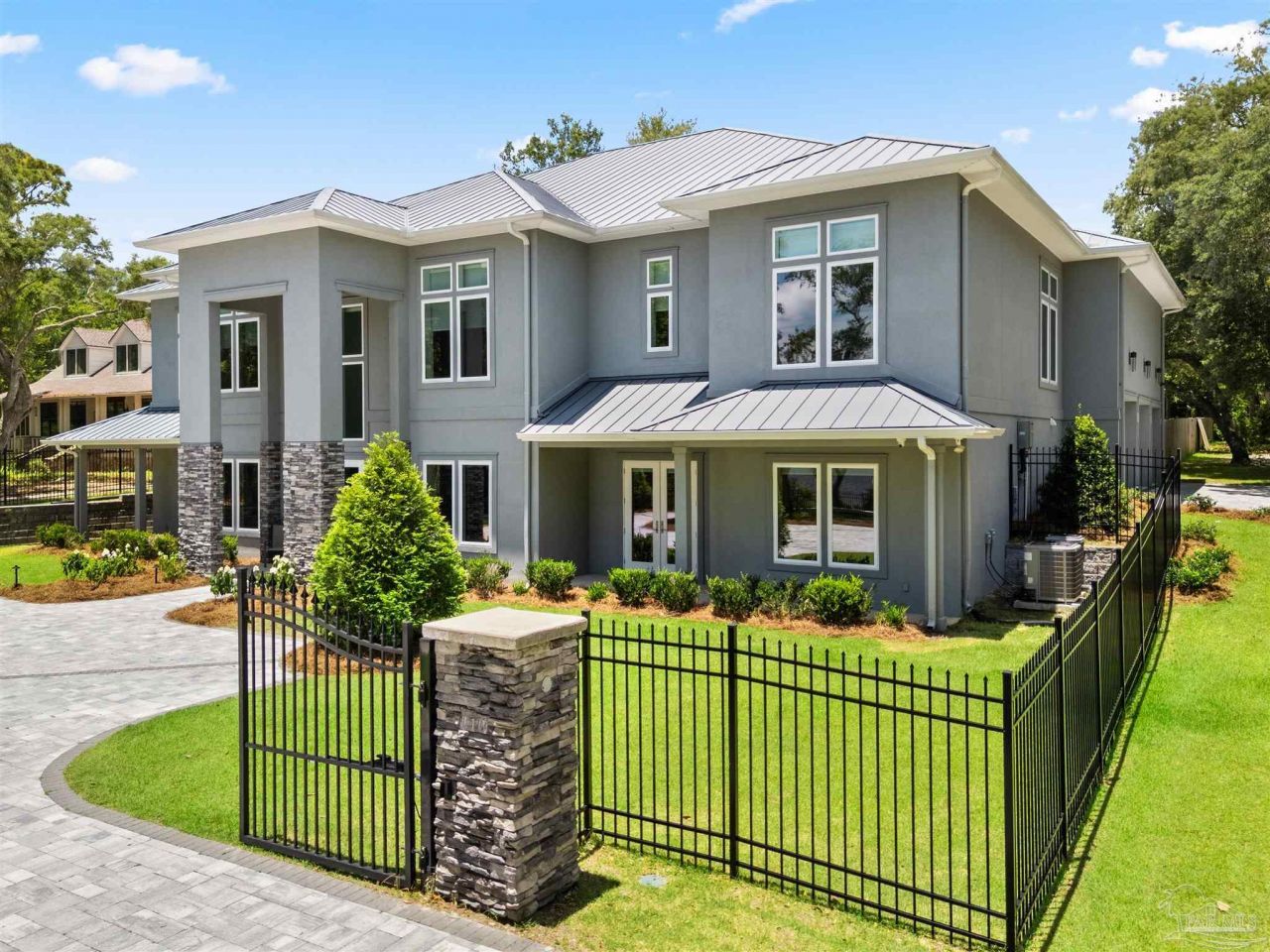 This estate offers a rare opportunity to live and entertain on a gated one acre bayfront lot along one of Pensacola's most iconic stretches of Scenic Highway. Designed for elevated living, the home features five spacious bedrooms, a spa inspired primary suite with soaring ceilings and a boutique style custom closet, and a statement kitchen centered around an oversized waterfall island with premium appliances and a hidden pantry for seamless hosting. Walls of glass frame sweeping bay views and fill the main living spaces with natural light. A private office and dedicated home gym support both productivity and wellness, while the lower level...read more