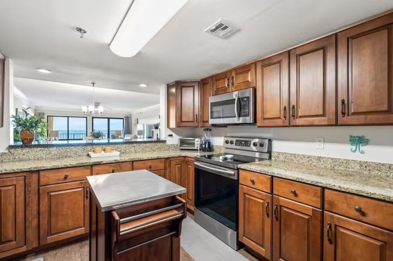 Floor to ceiling sliding glass doors in the Living Room and complementary glass windows in the Primary Bedroom, open up to a thirty foot balcony Comfy coastal decor includes newly updated bathroom.If your family likes having more than one cook in the kitchen, the central island can give the headed chef welcome elbow room. The unobstructed views of the quartz crystal sand lead to the emerald waters beyond where families may enjoy Watersport activities including snorkeling, paddling on Chartered vessels to parasailing and SCUBA diving,, boarding, jet ski or parasailing in addition to World's Luckiest Fishing Village. Time for a nice walk?...read more