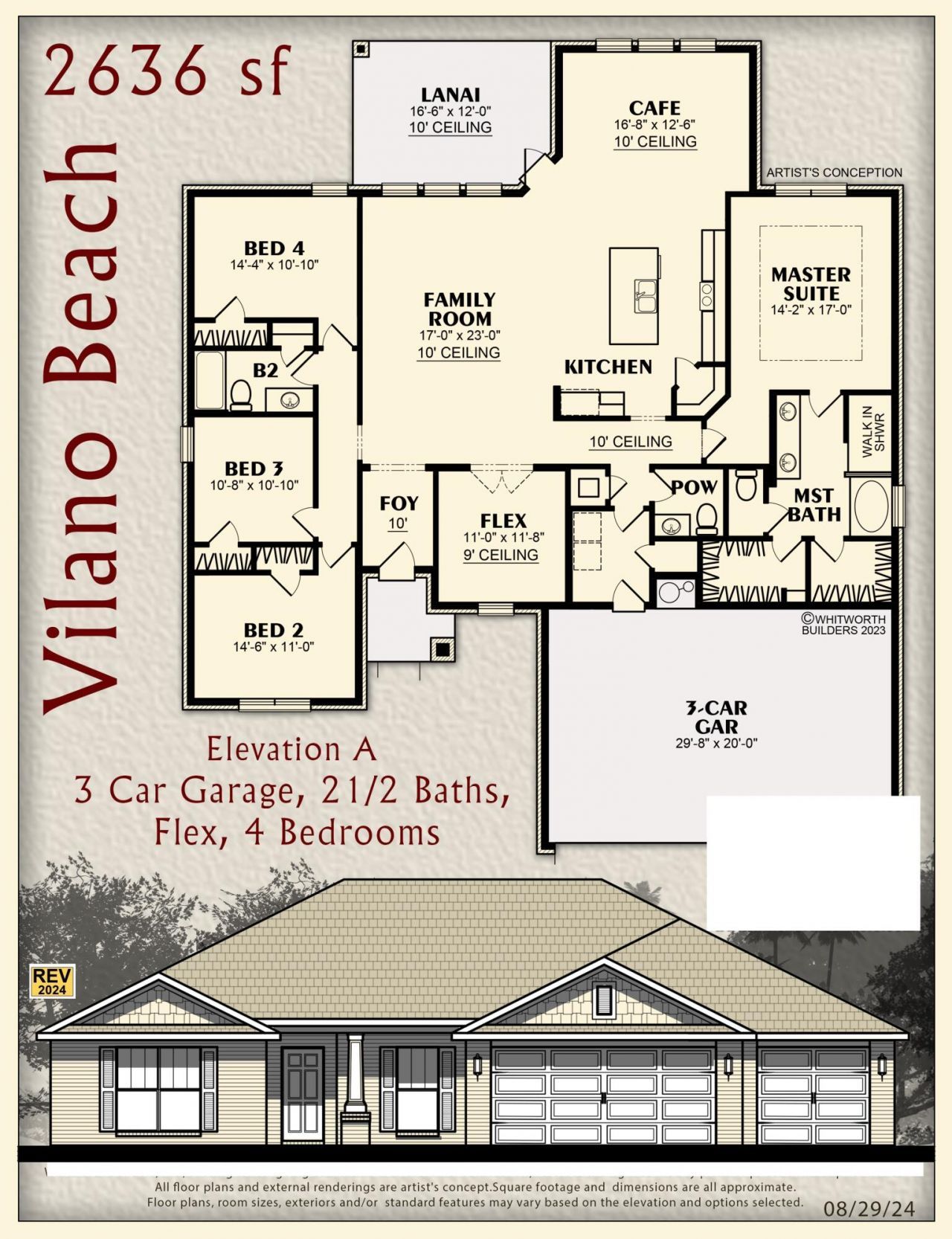 This Plan Features: 2 x 6 Exterior Construction, 3 CAR GARAGE, 4BR/3BA & Flex Rm, & Breakfast Cafe * 10 Ft Ceilings & Laminate Wood Plank Flooring in Main Living Areas * Granite Countertops Kitchen & Baths * Tile Flooring in all Baths* Kitchen: Granite Island, Stainless Steel Appliances & Walk In Pantry * Soft Close Cabinetry * Main Suite w/ Trey Ceiling & Main Bath with Builders Signature Zero Entry Walk in Tile shower w/ 2 Shower Heads, Separate Soaking Tub, Double Vanities & Large Walk-in Closets * Ceiling Fans All Bedrooms, Family Rm & Rear Covered Lanai * Irrigation & more.