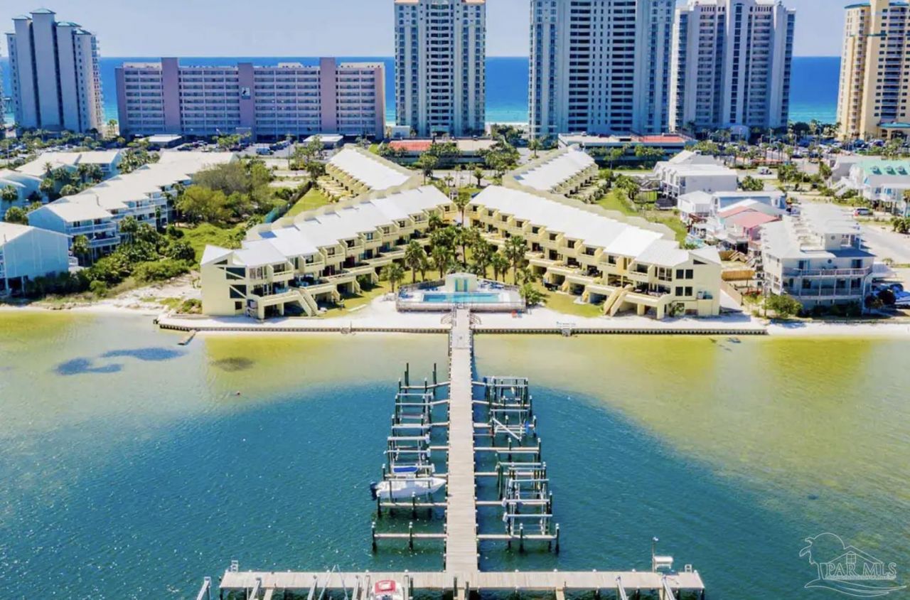 Discover this exceptional 4-bedroom townhome with breathtaking water views, easy beach access, a 22-foot boat slip, and a two-car garage! Situated on Navarre Beach, this unique property boasts over 2,200 square feet of thoughtfully designed living space and a proven rental history. Enjoy a leisurely walk to the pristine beach in under three minutes or take a quick 30-second golf cart ride to one of Florida's most stunning shorelines. Offered fully furnished and move-in ready at closing, this townhome combines comfort and convenience. The main living area features soaring ceilings, providing an open and airy atmosphere. The home includes...read more