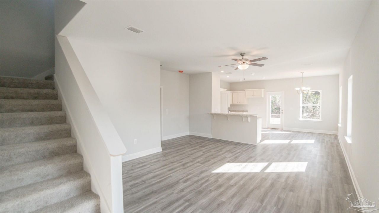 This 2025 sqft 2 story features granite in the kitchen and Cortec vinyl plank in all the wet areas as well as the common areas downstairs. This open plan concept showcases the Master suite downstairs with a separate garden tub and shower and then the secondary beds are upstairs so there is plenty of privacy. The loft upstairs is huge and can be utilized as play space, study area, or a fantastic gathering area for your kids and their friends when they come by. In This neighborhood, you will find Patio homes with architectural shingles, hurricane storm panels, double pane low E windows, we clear the lots and then sod to 120 from front property...read more